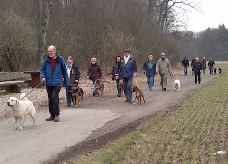 Zu unserer Basisausbildung gehört nicht nur das Üben auf dem Platz, sondern auch Gruppenstunden in Wald und Feld.